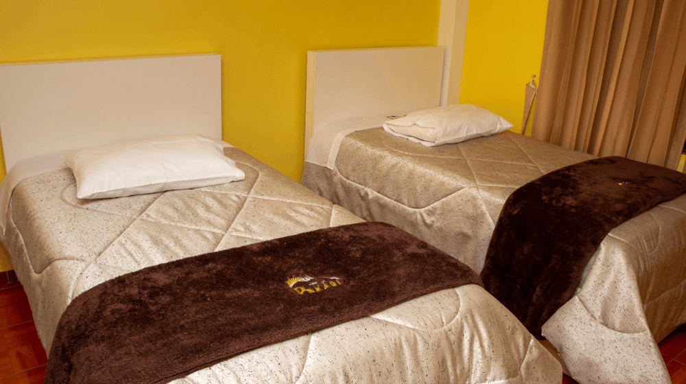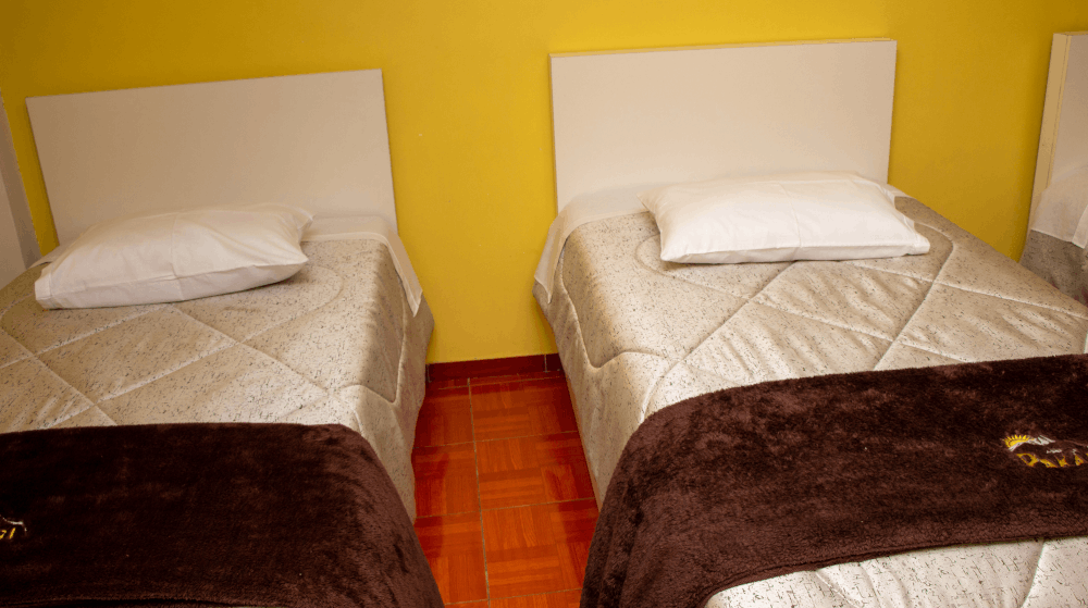 La habitación doble cuenta con capacidad para uno ó dos huéspedes, en estas habitaciones encontrará dos camas individuales de plaza y media, cómodas y confortables para un merecido descanso, también se encuentra equipada con televisión por cable, baño privado, agua caliente, servicio de internet inalámbrico, todo ello para hacer de su estadia la mas relajante y confortable posible.
